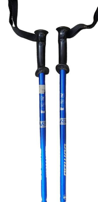 Bâtons de randonnée télescopiques, hauteur 65/135 cm, tampons en bon état.