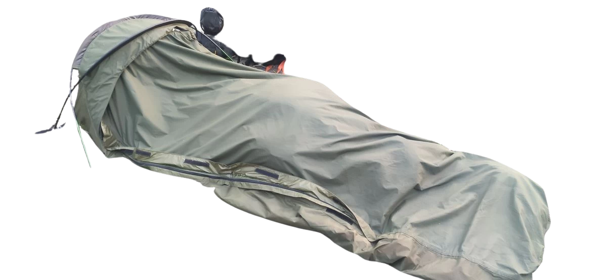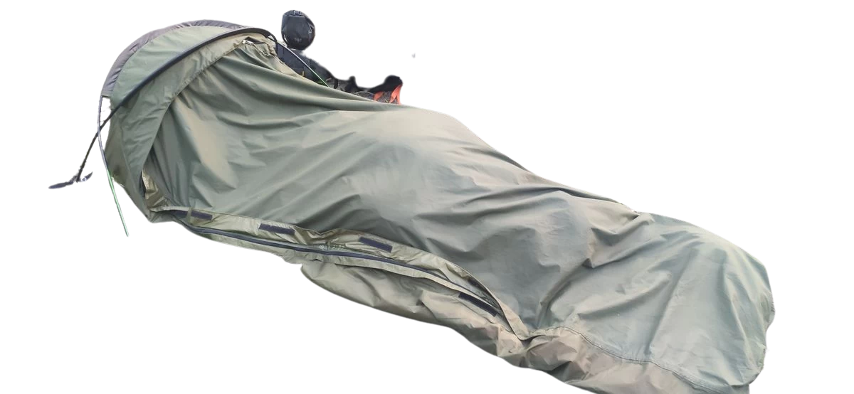 Bivy en très bon état , la lanière du sac de rangement est un peu déchirée mais elle reste tout à fait fonctionnelle , n’a servit que pour trois nuit , parfait pour le bushcraft, le bikepacking/cyclotourisme ou les randonnées avec des bivouacs en toute discretion !