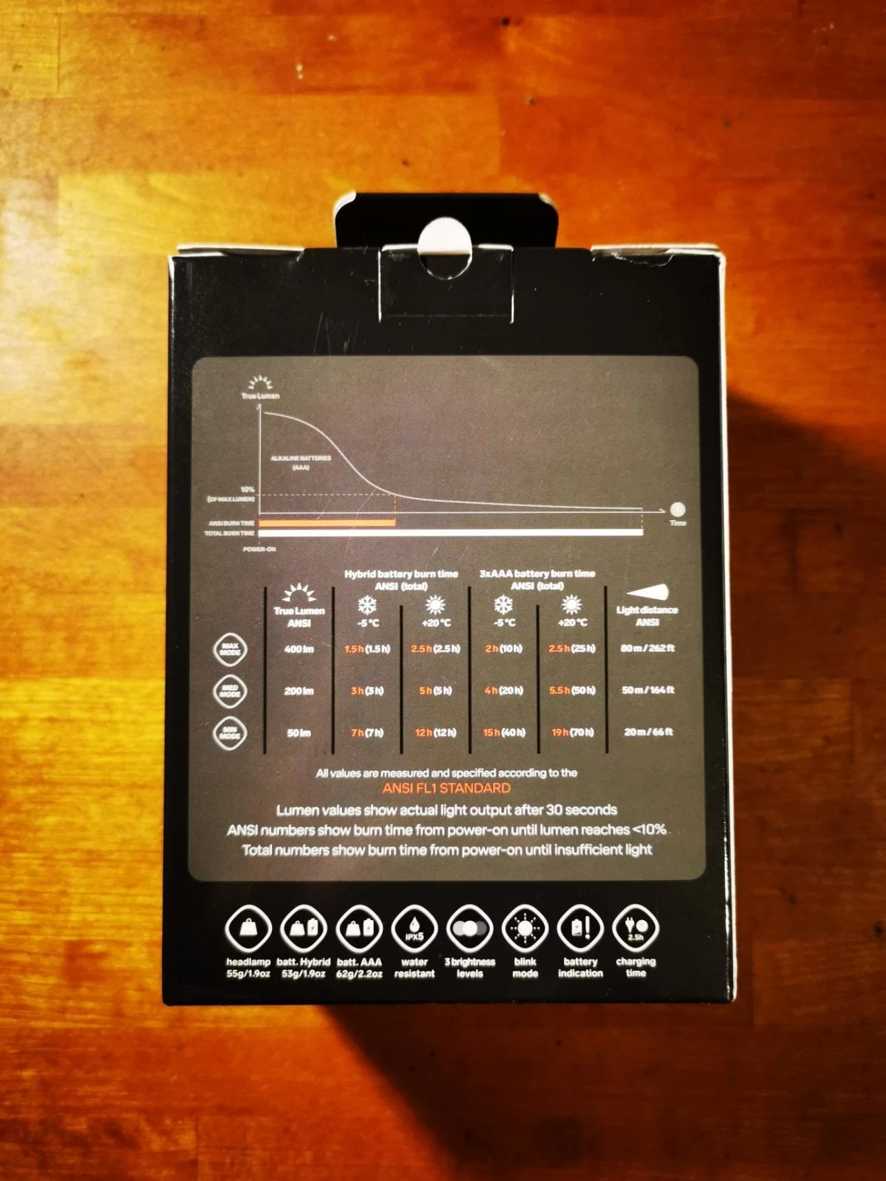 Elle fonctionne sur batterie ou pile, le gros avantage de la lampe étant l’intégration du cable dans le bandeau donc pas de fil qui dépasse !