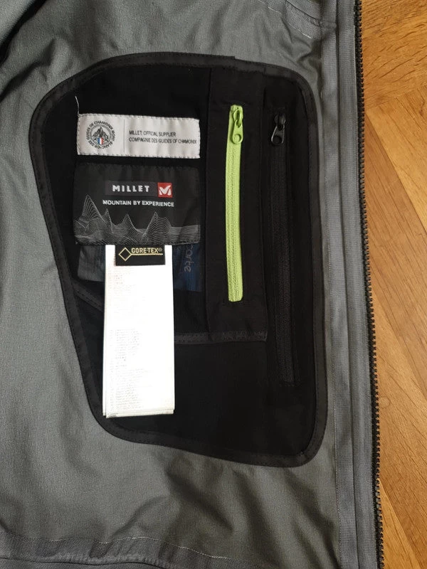 Veste d’alpinisme millet trilogy. Gore TeX 3 couches avec renforts sur les Ă©paules pour le sac Ă dos