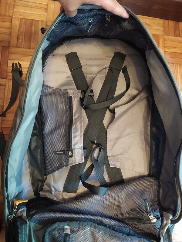 Sac à dos de voyage au format plus proche des valises, il possède une ouverture complète du compartiment principal, facilitant l’accès et l’organisation interne et des sangles de compression, ce qui permet aux vêtements de ne pas être froissés. Il y a aussi un compartiment inférieur séparé, pour placer les chaussures ou les vêtements sales, et un système de protection pour les sangles et la fermeture éclair avec passage pour les cadenas, pour quand le sac à dos est expédié.
