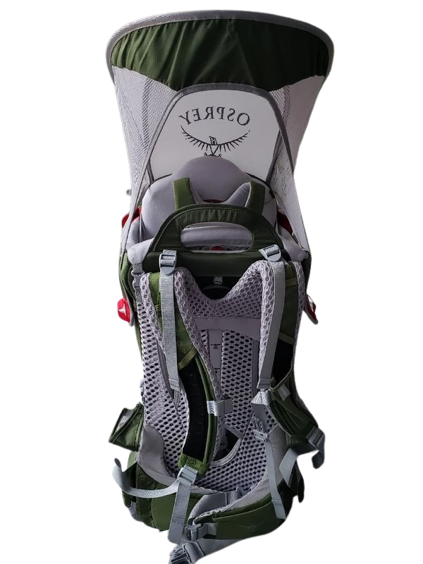 Vend porte bébé de randonnée jamais servi de marque Osprey modèle Polo AG. Avec pare soleil intégré.