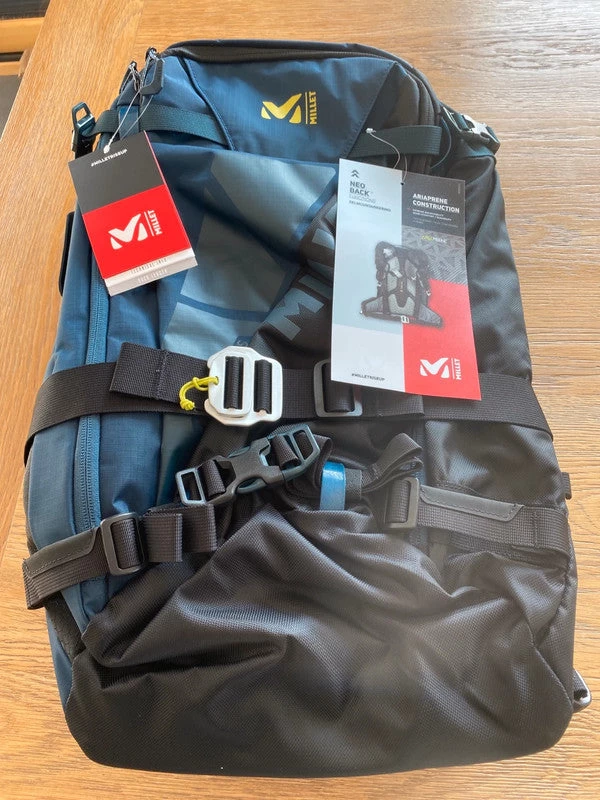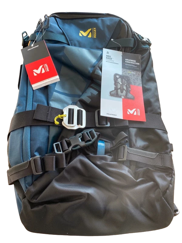 Le look montagne assumé du Neo affiche clairement la couleur : il sera porté lors des ascensions, il faudra donc qu’il se montre à la hauteur. Le matériau sélectionné pour l’arrière provient des sacs de fast hiking. La respiration du dos s’accompagne d’une circulation d’air globale qui provient du mesh employé et du travail sur les bretelles et ceinture. Pour le système d’airbag avalanche, le mot d’ordre pourrait être « Less is more ». La sobriété est souvent une marque d’efficacité. Le système Alpride est 100 % mécanique. C’est un ressort qui est mis sous tension, donc la poignée déclenche forcément.