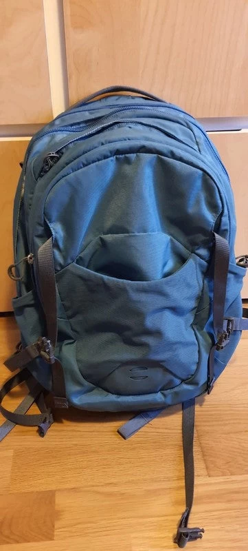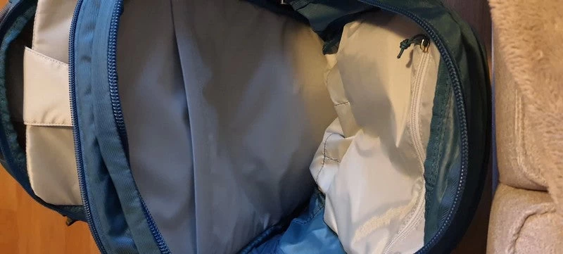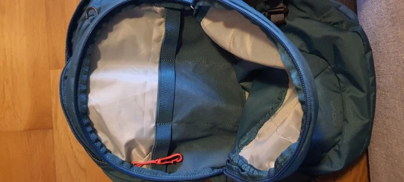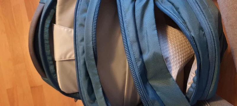 Sac à dos Ospray spécialement adapté à la morphologie féminine. 34l Ethel Blue (plus vert que bleu, c’est ma lumière qui fait paraître bleu, c’est la couleur dark teal.) Nombreuses poches :1 ordinateur 15″+ tablette 2 vaste poche multifonction, 3 poche rangement avec poches intérieures et porte clé, 4 poche speciale lunettes de soleil,5 poche extérieur à veste ou pull, 6 porte bouteilles… je n’ai rien oublié ? Renfort et aération dorsale. Très pro pour des adeptes de randonnée comme de voyage.