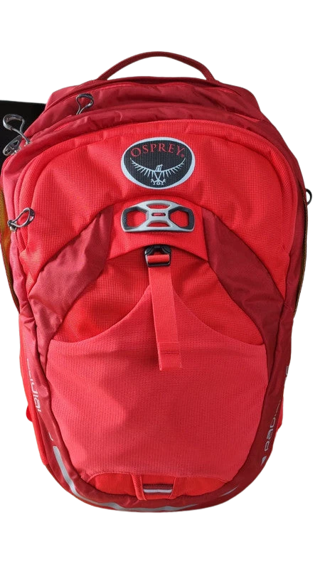 Sac dans un état proche du neuf. C’est une série qui intègre une structure interne pour que le sac tienne debout, c’est vraiment très pratique. Il est pourvu de nombreux compartiments (ordinateur, poche à eau, etc…) Il est possible d’y fixer son casque de vélo également grâce au dispositif sur le sac. Qualité au top comme sais le faire Osprey, le filet à l’arrière évite la transpiration excessive et d’avoir le dos trop humide.