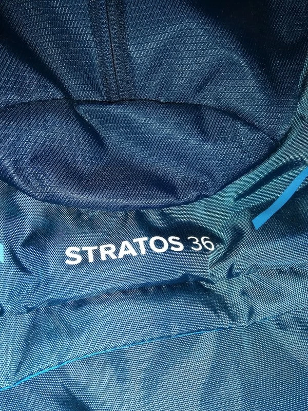 État neuf sans étiquette. Sac rando homme. Osprey Stratos 36. Système dorsal Air speed. Nombreuses poches. Protection pluie.
