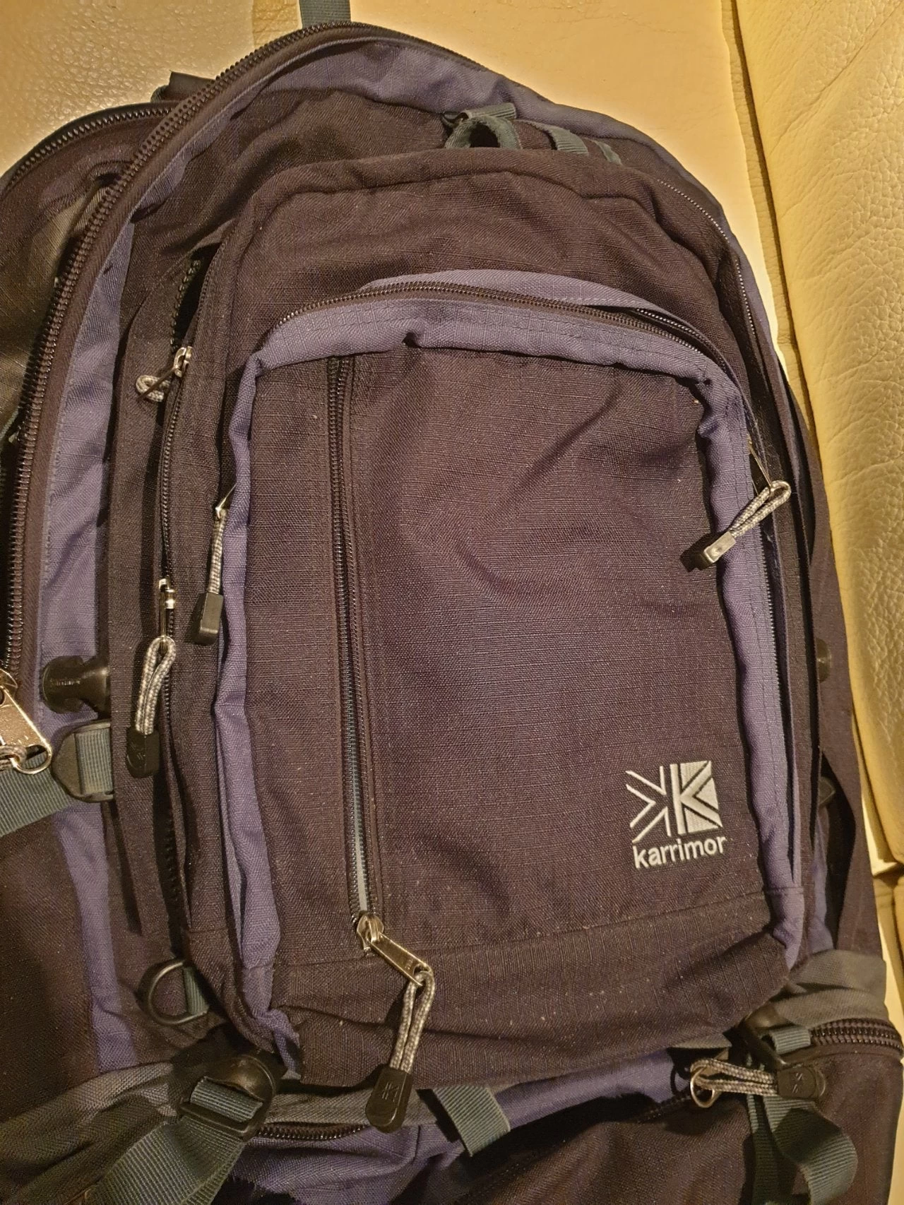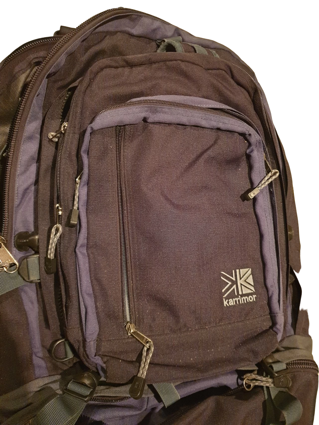 Sac à dos voyage, 65L + pt sac à dos à zipper sur le dessus du sac à dos principal. Poche indépendante sur la partie basse du sac. Poche pour ranger les bretelles du sac, poignées pour tenir le sac comme un sac de voyage