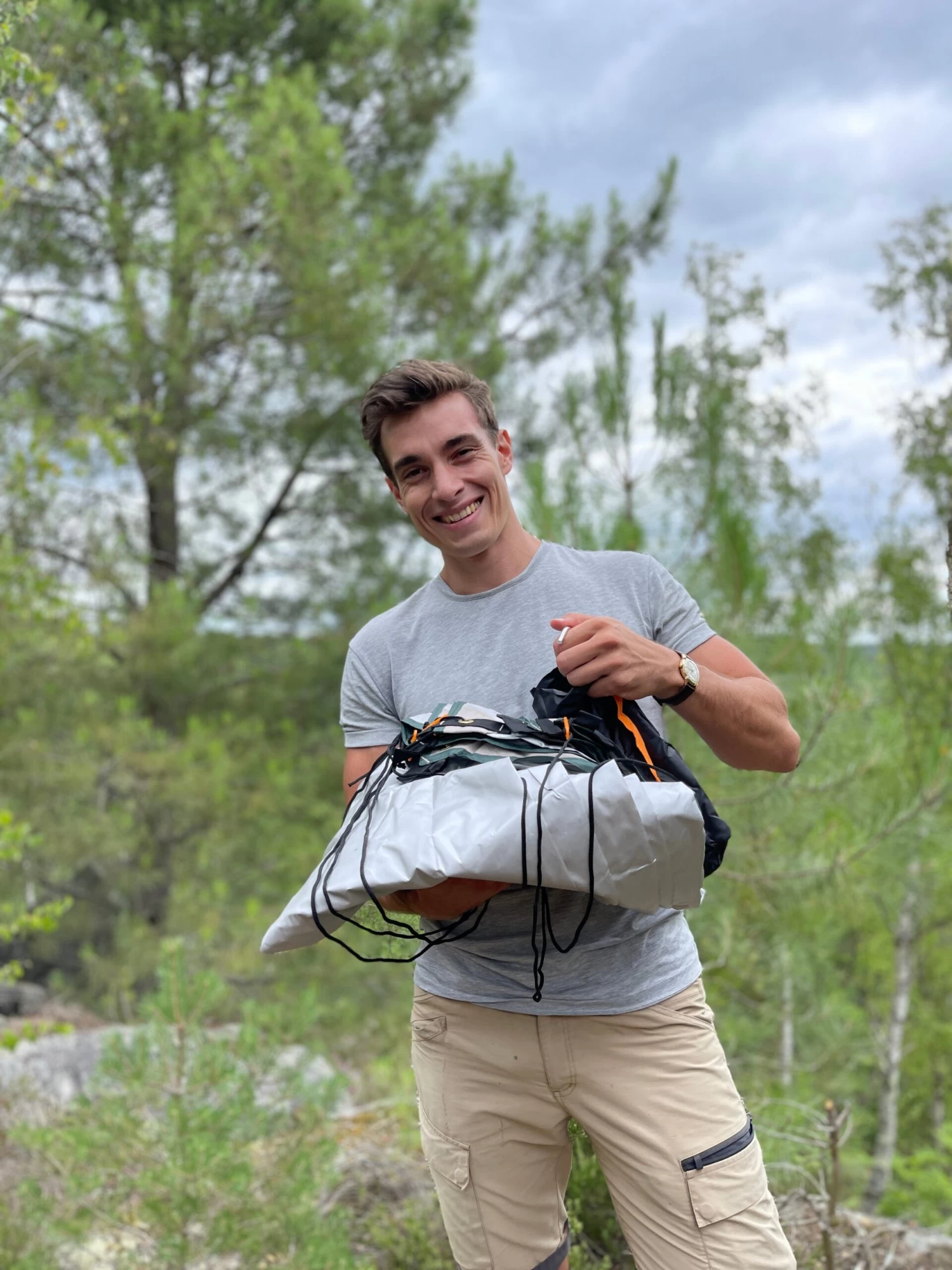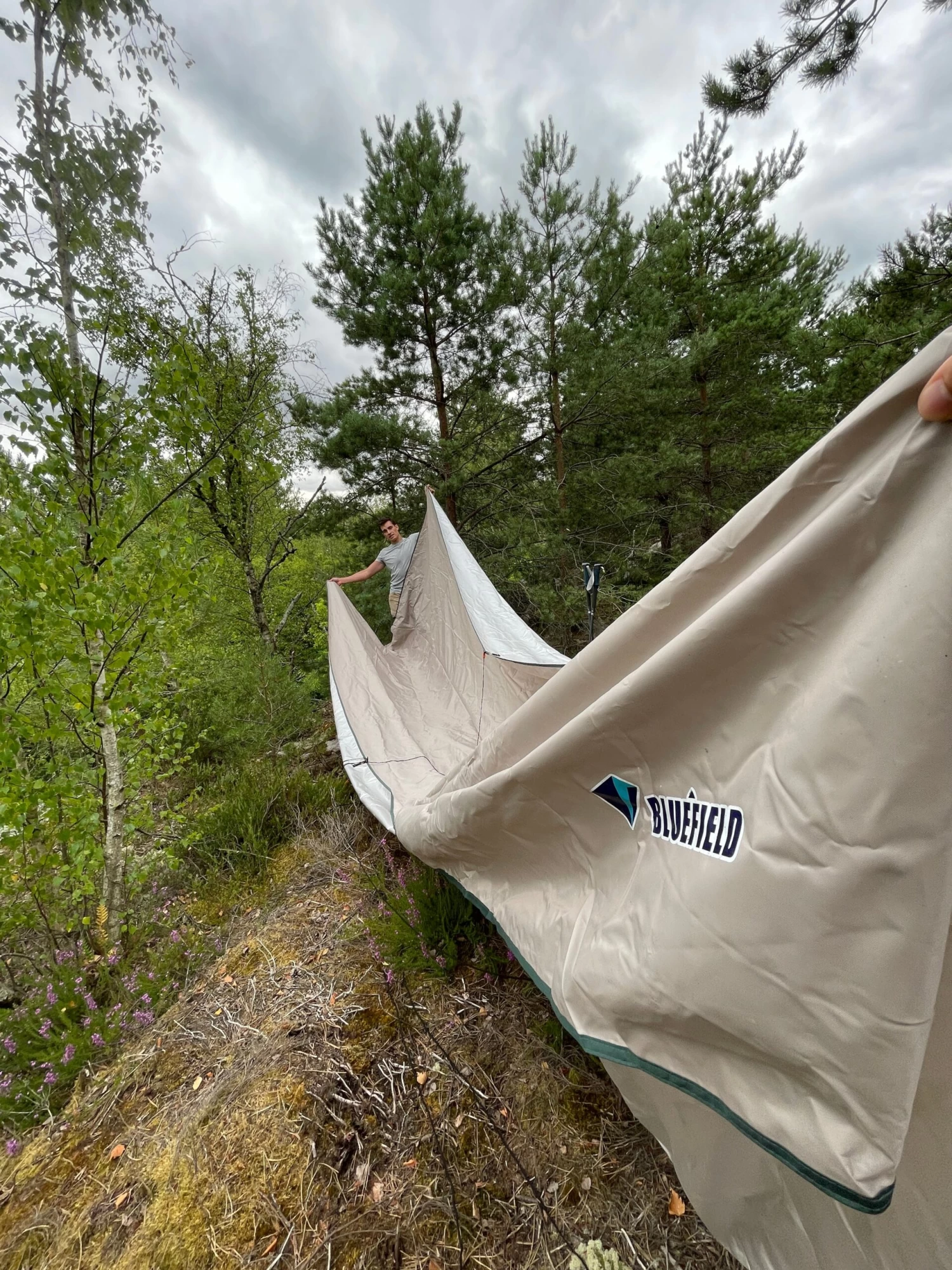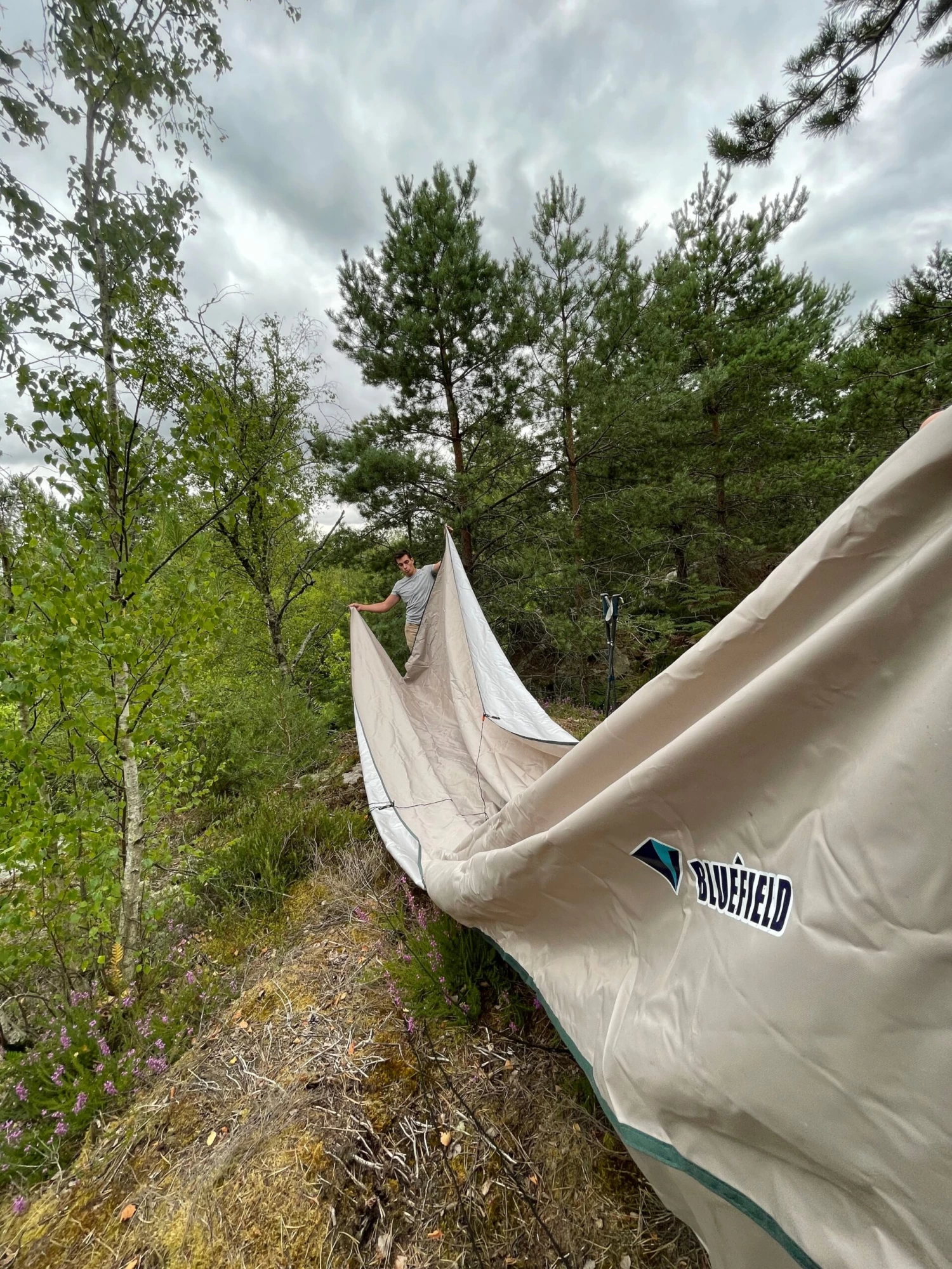 Le tarp de randonnée d’Antoine L’Aventure ! 100% étanche, vous pouvez rester à l’abris sous la pluie, pour prendre une pause ou passer la nuit.
