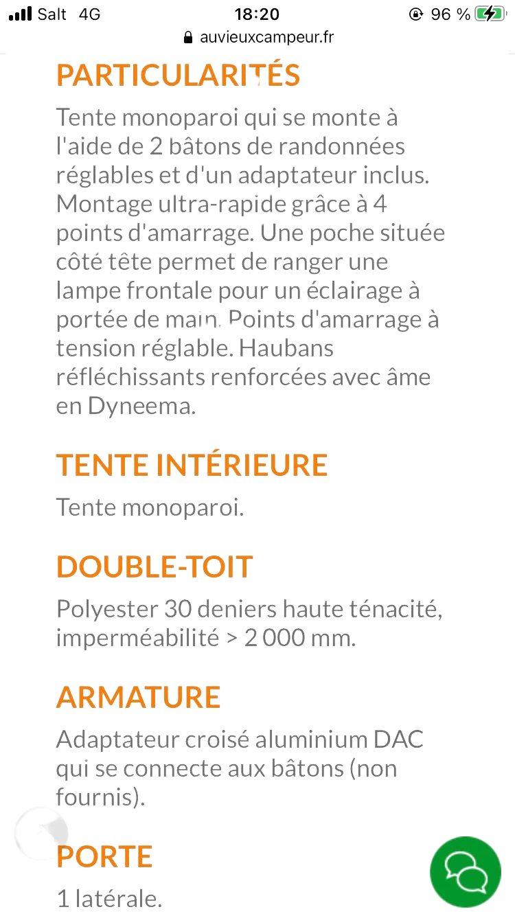 Super pratique, auto portante elle se monte avec 2 batons de marche (embout universel) !