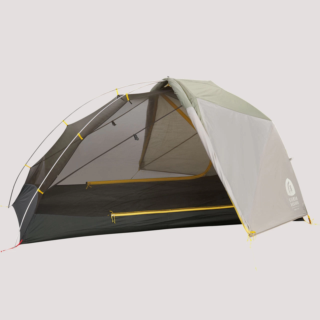 Moustiquaire sur la partie supérieure de la tente intérieure. Pigeonnières sur le double-toit.