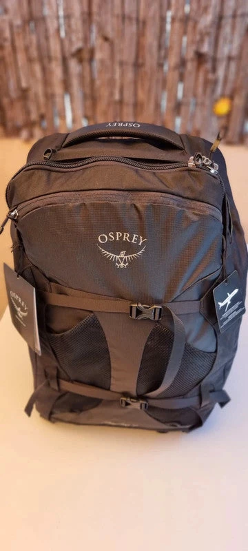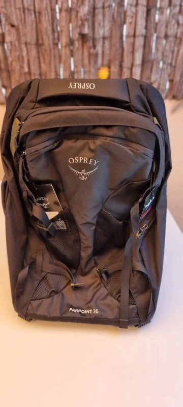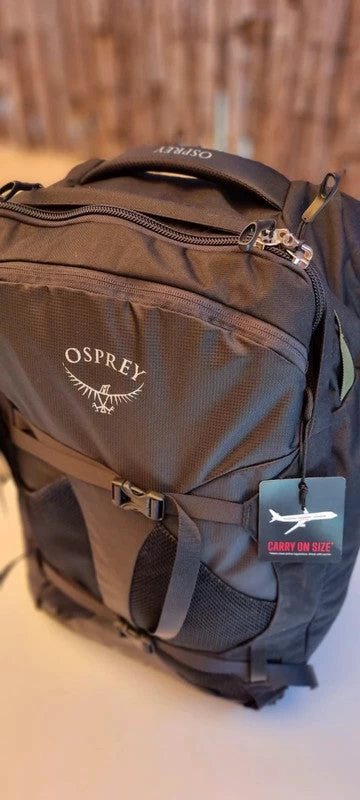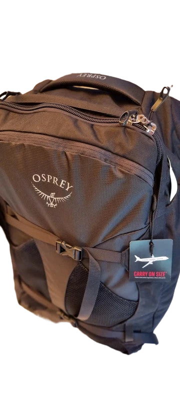 Valise de voyage à roulettes (trolley) capacité 36l. Marque Osprey, réputée pour sa durabilité et ses finitions. Modèle Fairpoint Roues 36. Peut être utilisé comme sac à dos si vous devez monter des escaliers, etc. ou comme chariot sans avoir à faire d’efforts. Format bagage à main, peut être transporté en cabine. Neuf
