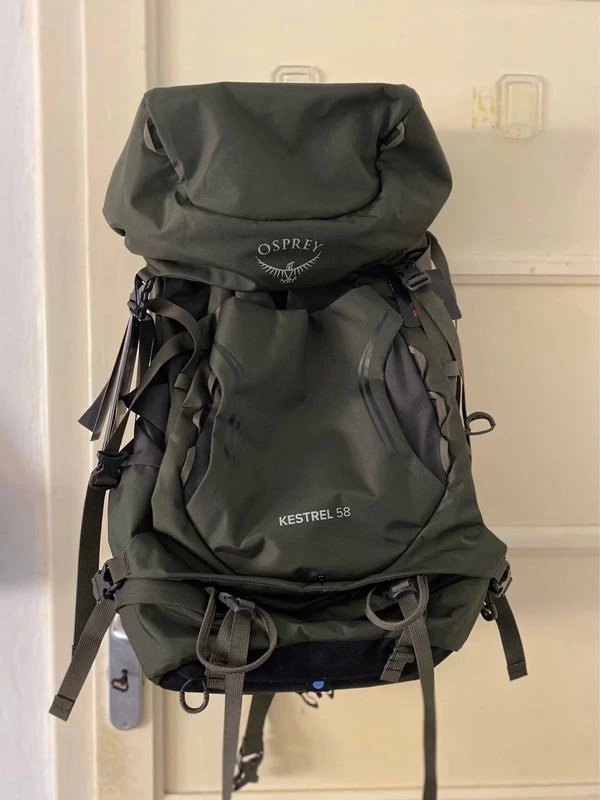 Sac Ă dos Osprey modèle Kestrel 58 L NEUF JAMAIS UTILISÉ avec la possibilitĂ© de s’inscrire Ă une garantie de 2 ans. Le poids du sac Ă dos est de 1,7 kg et il est dotĂ© d’une housse intĂ©grĂ©e.